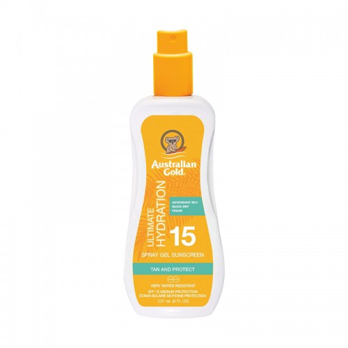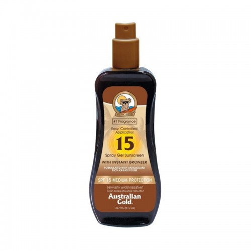 Quick view Aggiungi al carrello Australian Gold Protezione solare SPF15 237ml water resistant natural bronzer istantaneo... Prezzo 22,90 € Instant Bronzer Spray Gel Sunscreen SPF15 237ml Australian Gold Lozione protettiva spray con bronzer immediato.