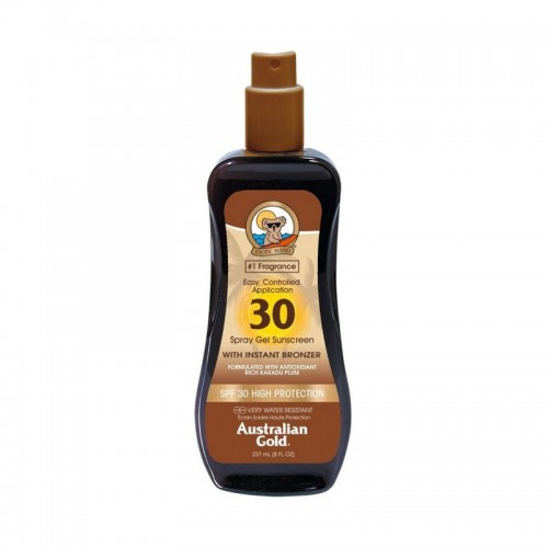 Quick view Aggiungi al carrello Australian Gold Protezione solare SPF30 237ml water resistant natural bronzer istantaneo... Prezzo 23,90 € Instant Bronzer Spray Gel Sunscreen SPF30 237ml Australian Gold Lozione protettiva spray con bronzer immediato.