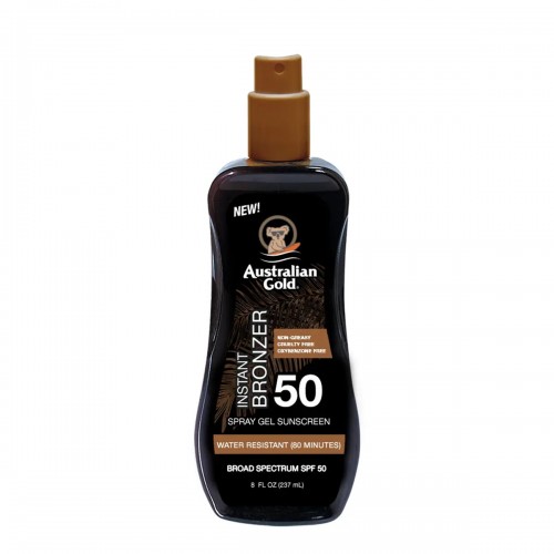 Quick view Aggiungi al carrello Australian Gold Protezione solare SPF10 237ml water resistant natural bronzer istantaneo... Prezzo 22,90 € Instant Bronzer Spray Gel Sunscreen SPF10 237ml Australian Gold Lozione protettiva spray con bronzer immediato.