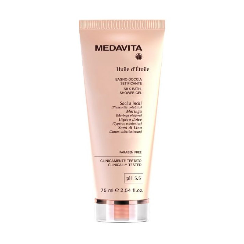 Medavita Bagno Doccia travel 75ml emolliente e levigato a base di pregiati oli naturali Bagno Doccia Setificante Huile D'Étoile