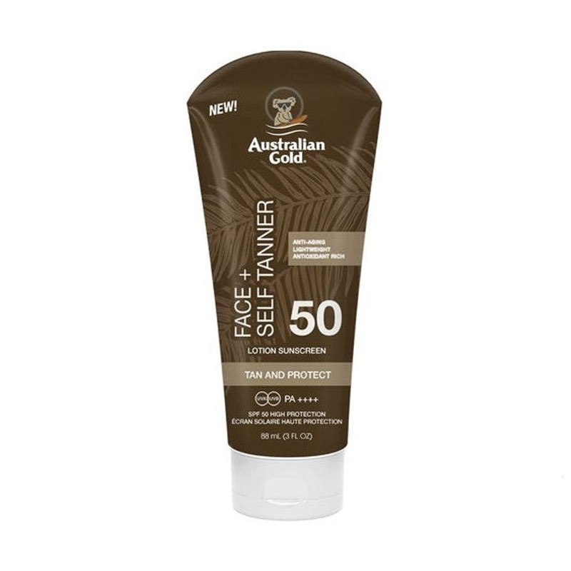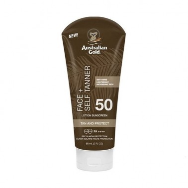 Australian Gold Protezione solare viso spf50 88ml lozione alta protezione viso con autoabbronzanti Face + Self Tanner Lotion