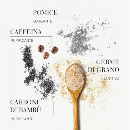 Carbone, Gemme di Grano, Caffeina e Maleluca Pomice.
