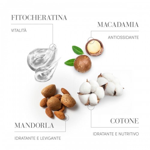 E inoltre: Cotone, Fitocheratina, Mandorla, Oliva, Avocado, Soia, Burro di Mango e burro di Cacao.