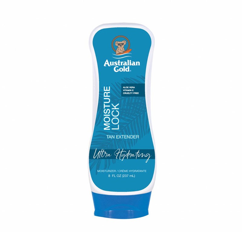 Australian Gold Moisture Lock Tan Extender è una lozione doposole cremosa e idratante sia per il viso che per il corpo con Aloe Vera e Vitamina E, che evita alla pelle di disidratarsi, screpolarsi ed esfoliarsi.