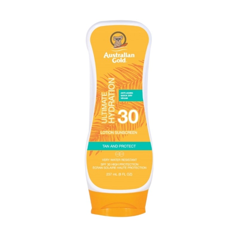 Australian Gold SPF30 Lotion Sunscreen è una lozione indicata per pelli non abituate all'esposizione solare. L'Olio d'Oliva, l'Aloe, gli Estratti di Girasole idratano e si prendono cura della pelle aiutandola a mantenere un aspetto ed una consistenza sani. Resiste a lungo sulla pelle, anche se si corre, si gioca o si nuota.