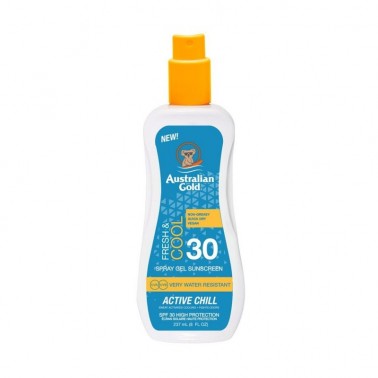 Australian Gold Protezione spray gel solare SPF30 237ml protezione alta in gel resistente all'acqua Fresh & Cool Spray Gel Activ