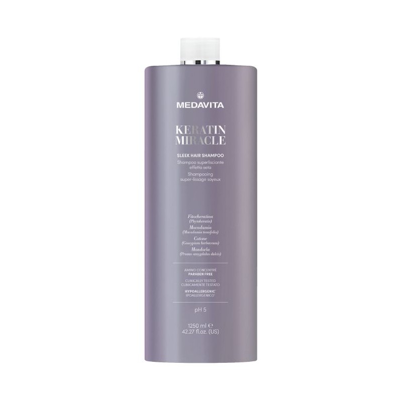 Shampoo super lisciante 1250ml anti-crespo effetto seta pH acido deterge dolcemente Sleek Hair Shampoo Keratin Miracle Medavita
