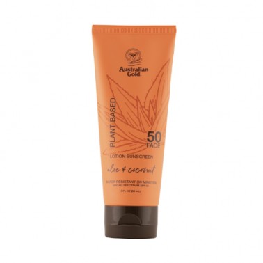 Australian Gold Cosmetico solare viso 88ml ad azione protettiva con virtù anti età, vegan e reef friendly Plant Based SPF50